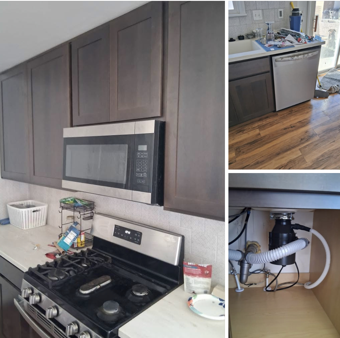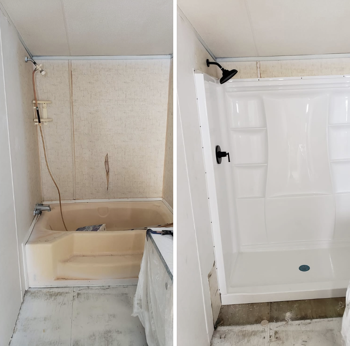 Custom-built metal awning addition for extra shade and protection.Modern kitchen upgrade with new cabinetry, stainless steel appliances, and fixtures.Front door refinishing project — new color, weather seal, and finish for a fresh look.Major subfloor repair and new hardwood-style flooring installation.Outdoor deck addition for camper with reinforced framing and stairs.Complete shower replacement with modern fiberglass unit and updated fixtures.